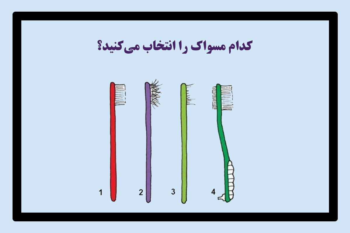 آیا آمادهاید تا دریابید که چه چیزی مسواک شما در مورد شما میگوید؟ نگاهی به تصویر بیندازید که انواع مختلفی از مسواکها را نشان میدهد. شما باید مسواکی را انتخاب کنید که به طور واقعی شبیه به مسواکی است که هر روز از آن استفاده میکنید.