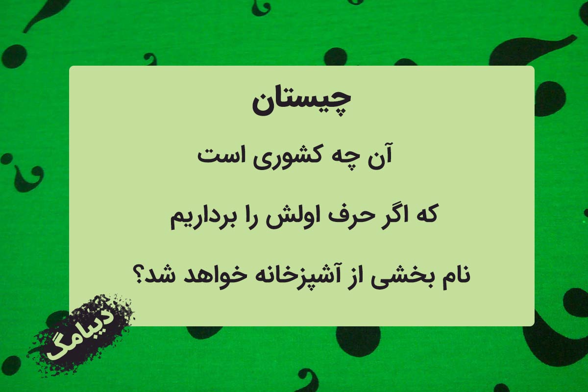 خب به سرغ سوال خودمان در دیبامگ میرویم آن چه کشوری است که اگر حرف اولش را برداریم قسمتی از خانه (آشپزخانه) خواهد شد.