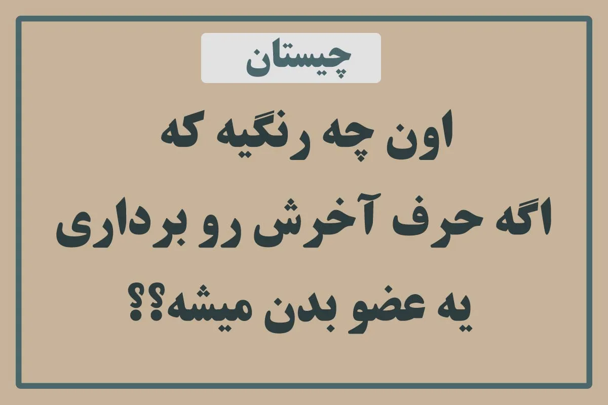 چیستان: اون چه رنگیه که اگه حرف آخرش رو برداری یه عضوی از بدن میشه؟؟