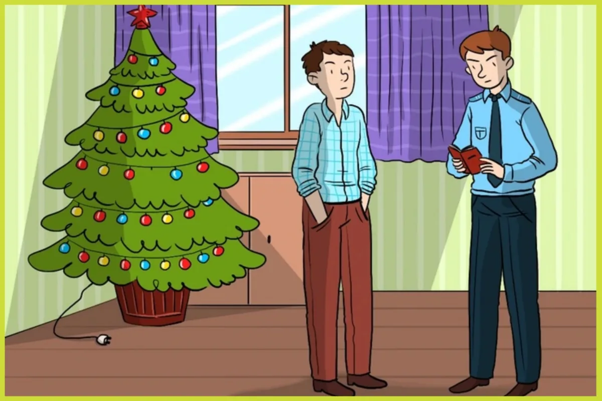 یک کارآگاه که در روز کریسمس کار می کرد، به یک تماس پاسخ داد. با رسیدن به خانه ای، زنگ در را به صدا درآورد و صاحب خانه خواب آلود یک دقیقه بعد در را باز کرد. کارآگاه صاحب خانه را متهم کرد و اظهار داشت: همسایه مدعی است در یک مهمانی در شب کریسمس وارد خانه آنها شده و اشیای با ارزش را به سرقت برده اند. صاحب خانه این اتهام را رد کرد و گفت: «این درست نیست. ما در خانه‌ی دوستانمان بودیم و شب کریسمس را جشن می گرفتیم. ما به سختی وقت داشتیم درخت کریسمس خودمان را تزئین کنیم.»