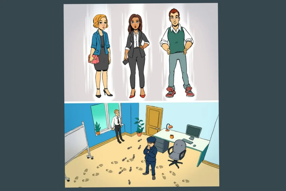 یک تاجر به دفترش رسید و متوجه شد که برخی از اسناد بسیار مهم از روی میزش ناپدید شده است. پلیس به 3 نفر مشکوک شد و هر کدام گفتند که حتی به دفتر نرفته‌اند. چه کسی دروغ می گوید؟