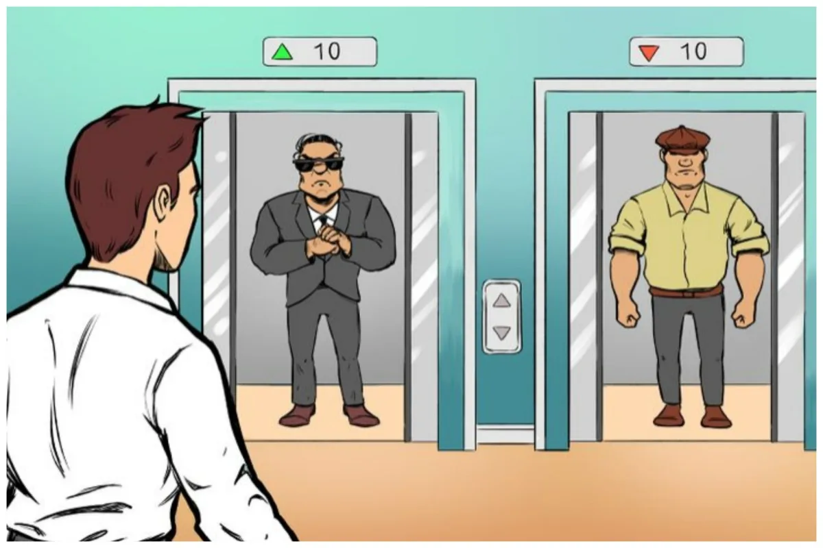 علی پیامی دریافت کرد، مبنی بر اینکه یک قاتل زنجیره ای به تازگی در حال ورود به ساختمان او دیده شده است. او تصمیم گرفت از ساختمان خارج شود. در حالی که او منتظر بود، 2 آسانسور همزمان به طبقه علی رسیدند. در هر دوی آنها مردی بود که بسیار مشکوک به نظر می رسید. او در کدام آسانسور باید سوار شود؟