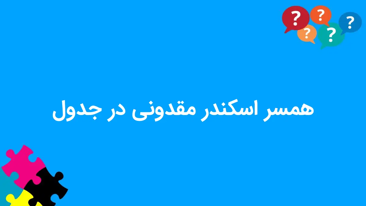 معنی و مفهوم همسر اسکندر مقدونی در جدول را در باکس قرمز پایین مطلب بیابید.