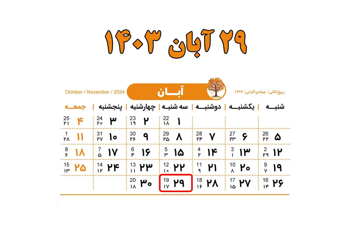 ۲۹ آبان چه روزی ۱۴۰۳ است؟