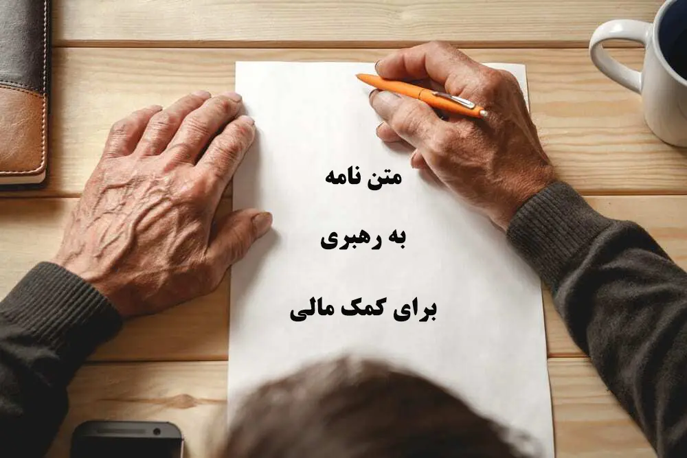 به امید سلامتی و طول عمر شما رهبر عزیز، این نامه را مینویسم. مشکلات اقتصادی و مالی در این ایام بر زندگی بسیاری از ما تأثیر گذاشته است. این مشکلات گریبانگیر زندگی من نیز شده است. بنده به مدت[ ] است که بیکار شده ام و در پی آن چالش های مالی زیادی داشتم. اینجانب با ایمان به مساعدت شما، درخواست کمک مالی دارم تا بتوانم از بحران کنونی گذر کنم و زندگی بهتری برای خانوادهام فراهم نمایم.