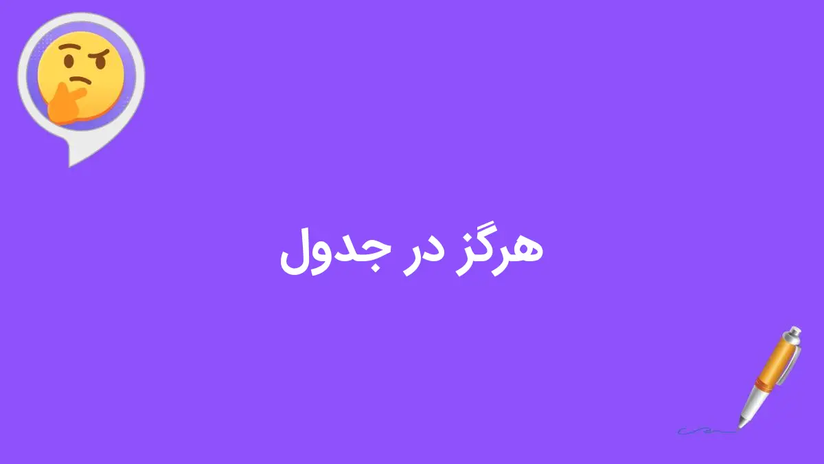 معنی و مفهوم هرگز در جدول را در باکس قرمز پایین مطلب بیابید.