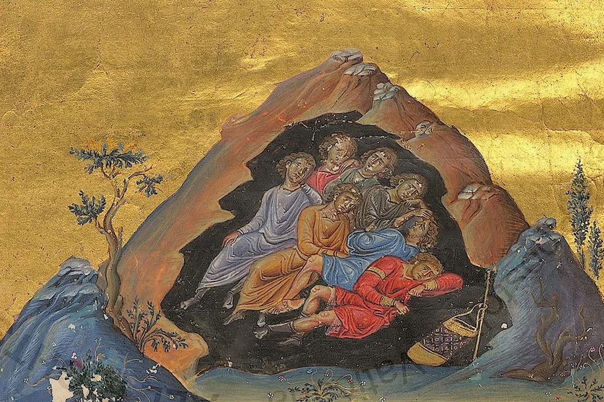 قرآن کريم در آيات ۹تا۲۶ کهف از جوانانی مؤمن نام می‌برد که از آیین بت پرستی دوران خويش بيزاری جستند و با مأوا گزيدن در غار، به رحمت الهی پناه برده و از درگاه او درخواست هدایت کردند. خداوند نيز آنان را به مدت ۳۰۹ سال به خوابی عميق فرو برد و جايگاه امنی برايشان فراهم ساخت.