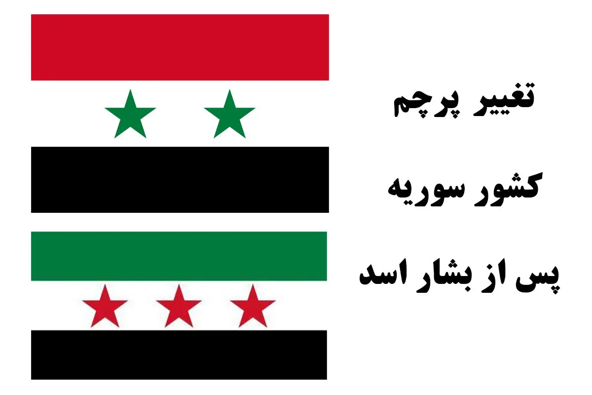 زمانی که گروههای تروریستی در تلویزیون دولتی سوریه اعلام کردند که حکومت بشار اسد سقوط کرده است، پرچمهای سبز، سفید و سیاه با سه ستاره قرمز در وسط، در سراسر این کشور دیده میشد.