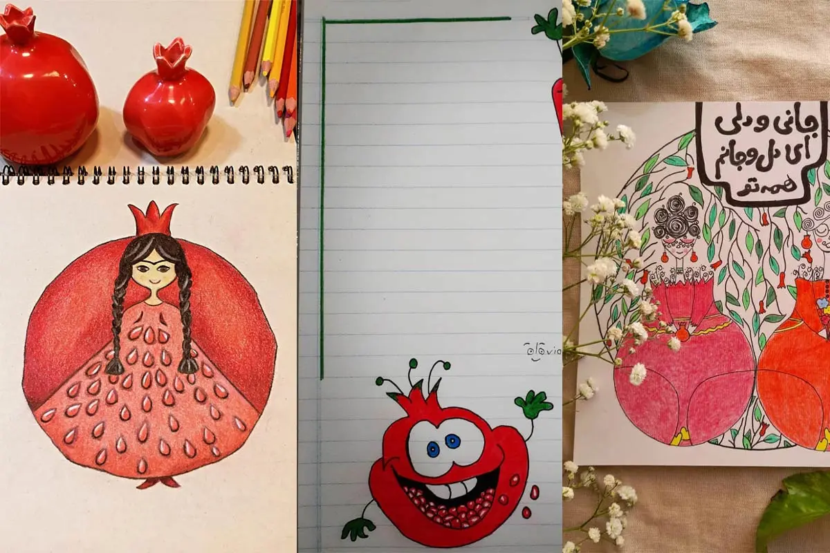 با مجموعهای از انواع نقاشی انار شب یلدا کودکانه و فانتزی، نقاشی انار برای شب یلدا سخت و حرفهای همراه ما باشید.