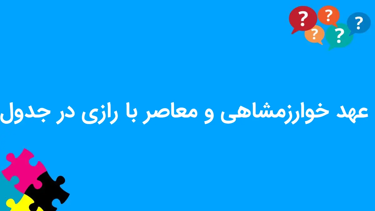 از دانشمندان عهد خوارزمشاهی و معاصر با رازی در جدول چیست؟