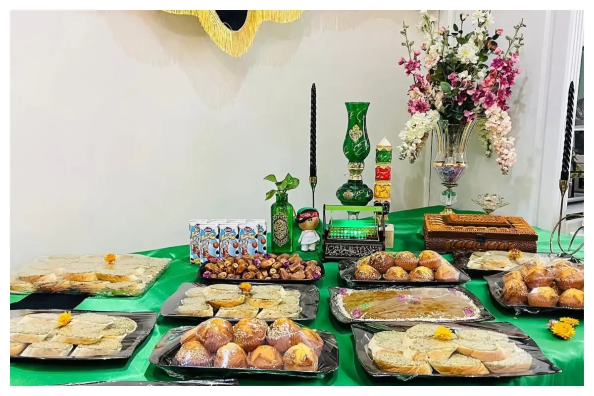 انواع حلواها، از جمله حلوای هویج و خرما (ساده یا گردویی)، نیز میتواند در سفره گنجانده شود.