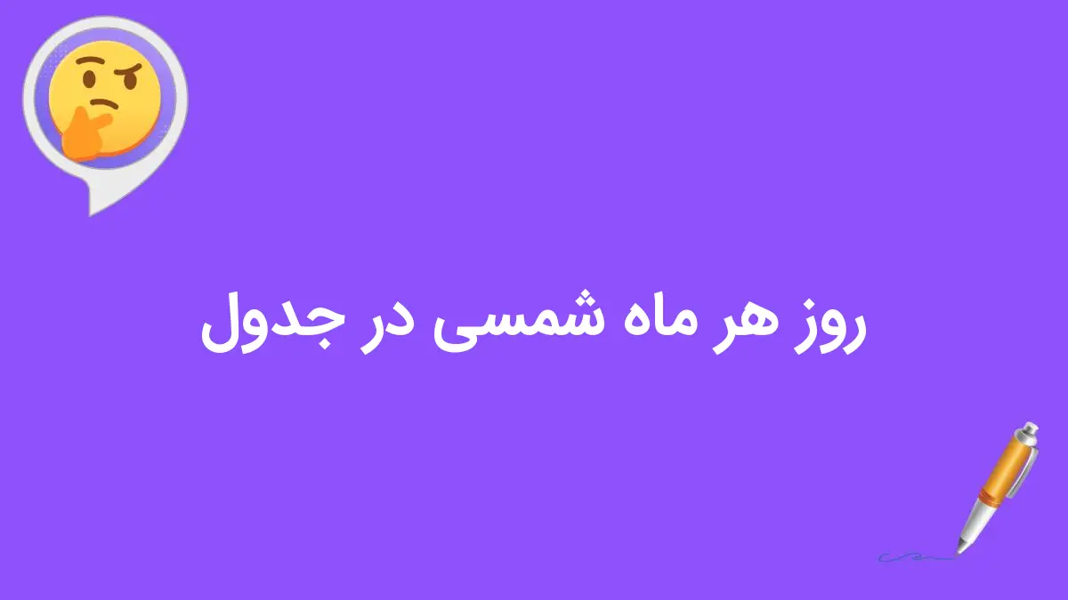 معنی و مفهوم روز هر ماه شمسی در جدول را در باکس قرمز پایین مطلب بیابید.