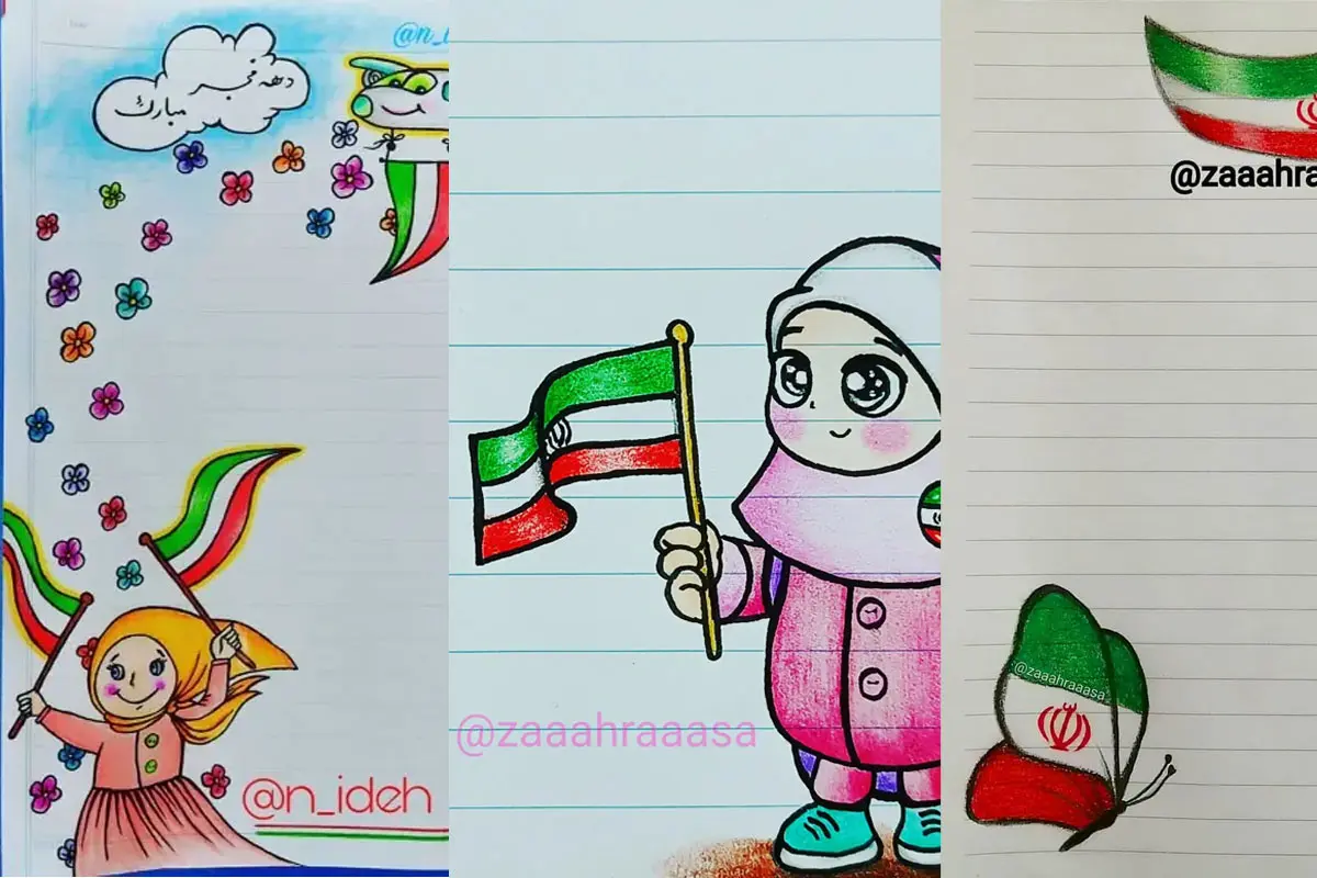 ایده نقاشی برای تزیین دفتر مشق مخصوص دهه فجر
