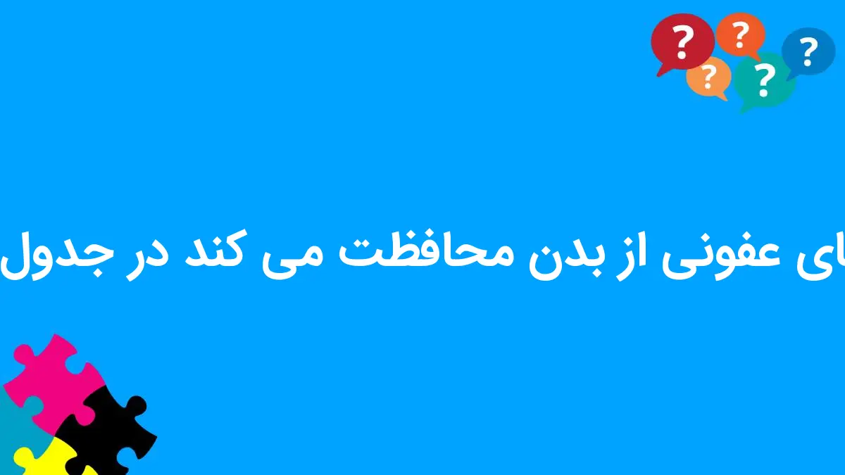 بخشی از سیستم ایمنی بدن به شمار می رود و در برابر بیماری های عفونی از بدن محافظت می كند در جدول چیست؟