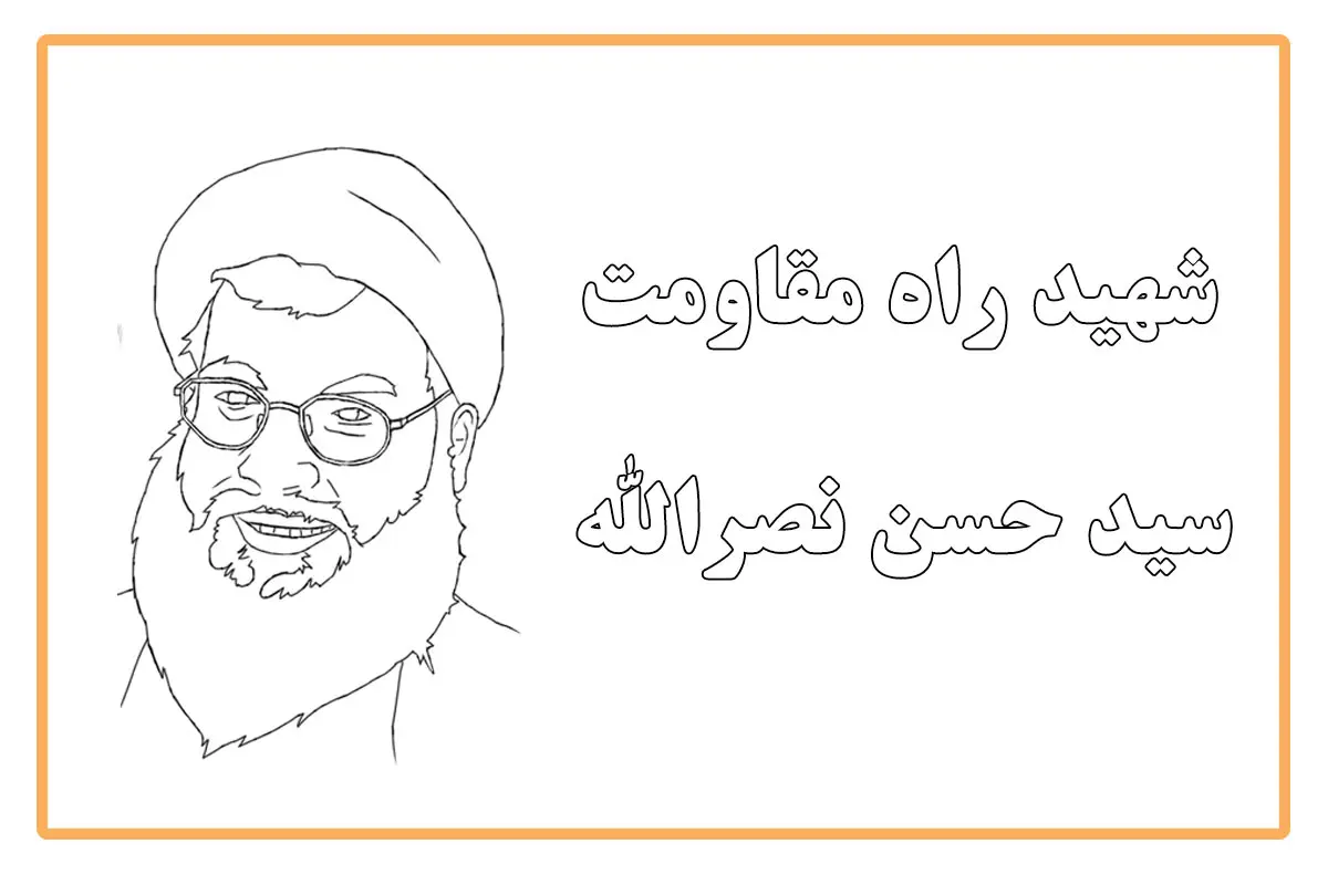 نقاشی شهید سید حسن نصرالله برای مدرسه به صورت کودکانه. کاربرگ نقاشی شهید سید حسن نصرالله برای رنگ آمیزی.
