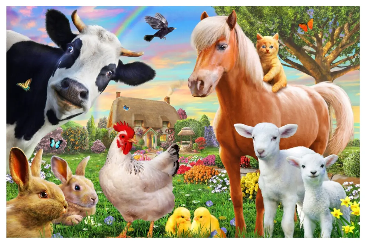 مرغ‌ها و گاوها: مرغ‌ها و گاوها بیشتر در مزرعه‌ها زندگی می‌کنند. انسان‌ها از آن‌ها تخم‌مرغ و شیر می‌گیرند.