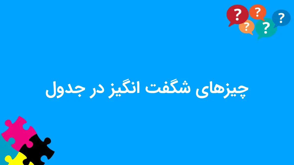 معنی و مفهوم چیزهای شگفت انگیز در جدول را در باکس قرمز پایین مطلب بیابید.
