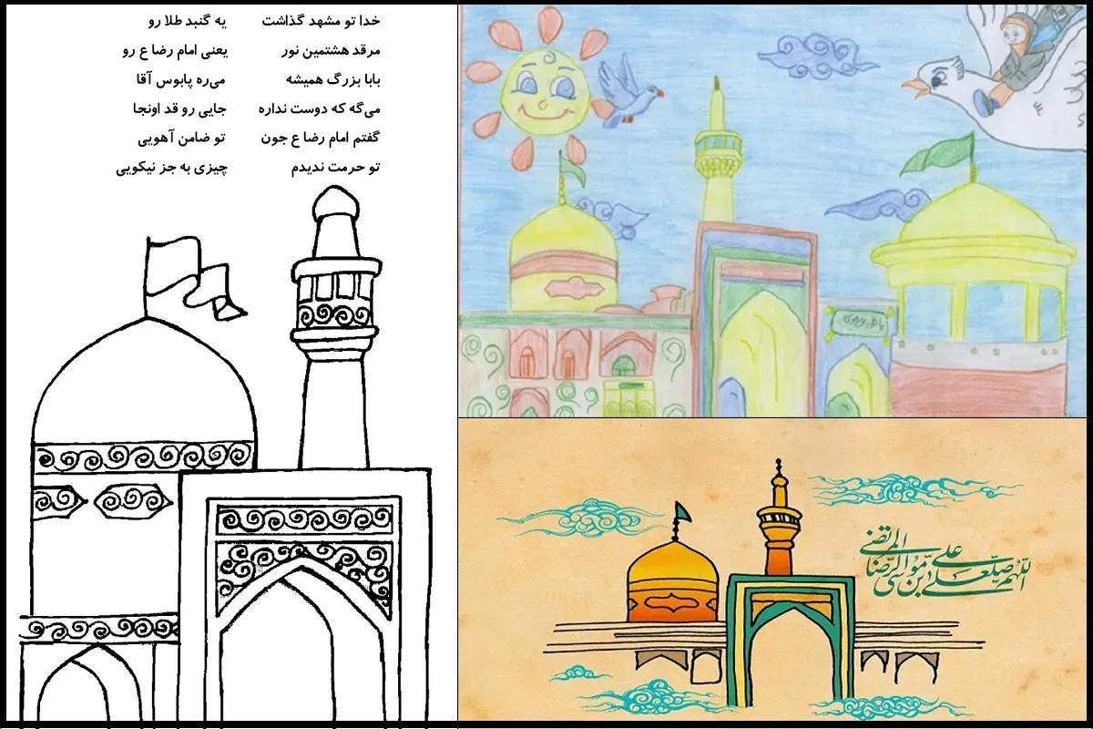 «مجموعه نقاشی حرم امام رضا (ع)»، همانند نقاشی نماز باران امام رضا (ع)، تنها تصاویری ساده نیست؛ پنجرهایست به سوی قلب مهربانی که میلیونها دلباخته را در آغوش گرفته است. اینجا، قلمهای کوچک و رنگهای روشن، آینه احساسات پاک کودکانی میشوند که میخواهند ارادت خود را با زبان بی زبانی به تصویر بکشند.