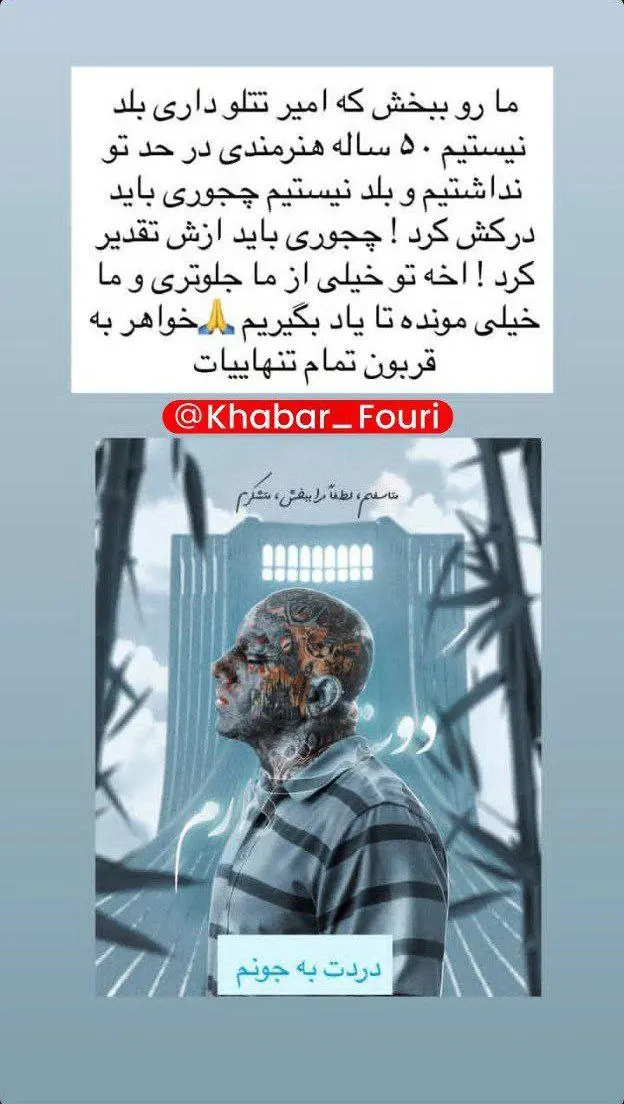 استوری خواهر تتلو در پی تلاش وی برای پایان دادن به زندگی👇