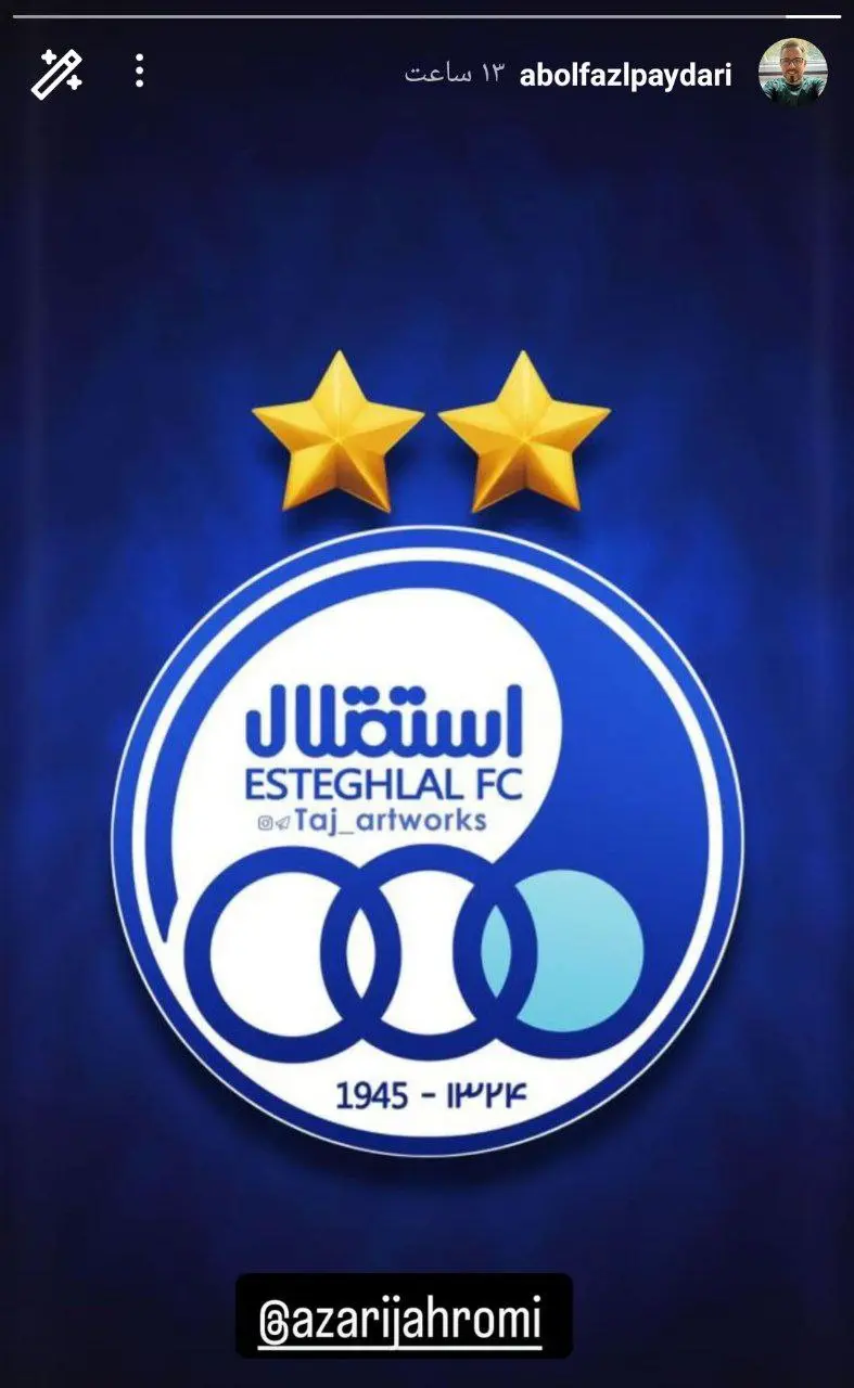 در میان تمامی تبریک‌ها و کری‌خوانی‌های پس از قهرمانی استقلال، شاید عجیب‌ترین واکنش متعلق به ابوالفضل پایداری، مالک برند “طبیعت” (که اسپانسر باشگاه پرسپولیس است) بود. او در یک اقدام غیرمنتظره، با انتشار لوگوی باشگاه استقلال (با دو ستاره طلایی رنگ) در صفحه شخصی خود و تگ کردن محمدجواد آذری جهرمی (وزیر اسبق ارتباطات)، به او کنایه زده است.
