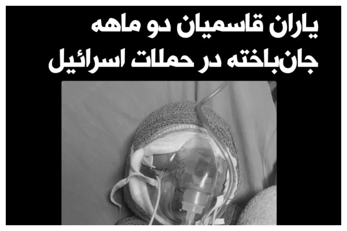 تصویری از یاران قاسمیان، کودک دو ماهه که در حملات اسرائیل به شهرک چمران تهران جان خود را از دست داده است، توسط رسانه‌های داخلی منتشر شده است.
