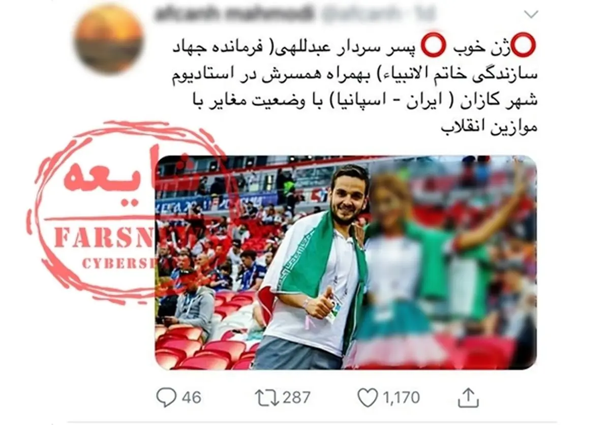ماجرا از این قرار است که حواشی مربوط به انتشار عکس یک زوج در جام جهانی ۲۰۱۸ روسیه، به سردار عبادالله عبداللهی، فرمانده وقت قرارگاه سازندگی خاتمالانبیاء سپاه پاسداران، نسبت داده شده بود.